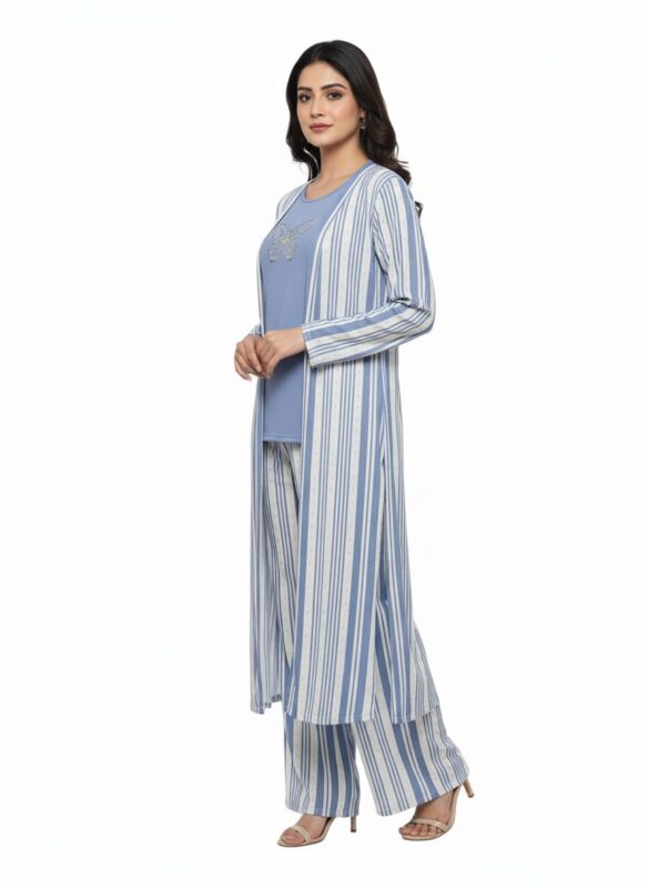 "Stylish Blue & White Striped Co-Ord Set | Pakistani Fashion