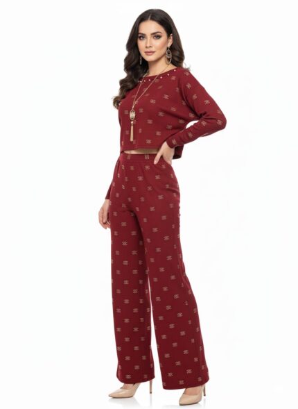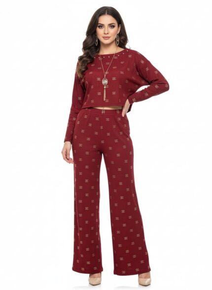 📸 Picture: A blue and white striped co-ord set consisting of a long open jacket and matching wide-leg pants. Paired with a blue top featuring a butterfly design.