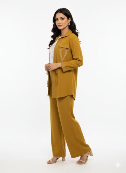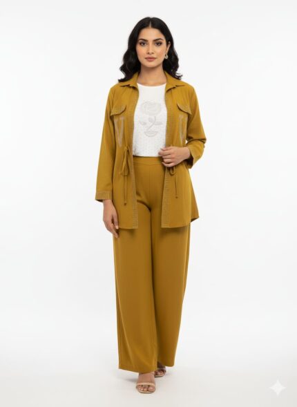 👜 Description: Elevate your style with this chic blue and white striped co-ord set! Perfect for casual outings or gatherings. The outfit features a long open jacket and matching pants with a trendy look.